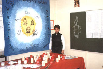 C’est ainsi que dans le centre,l’on reconnaît certains visages ou représentations : Gandhi,bien sûr,mais aussi Bouddha, Mère Thérèsa ou Jésus-Christ. Chacun d’entre eux, sans aucune distinction, a prôné l’amour du prochain, la compassion et même une certaine révolte sans pourtant recourir à la violence.
